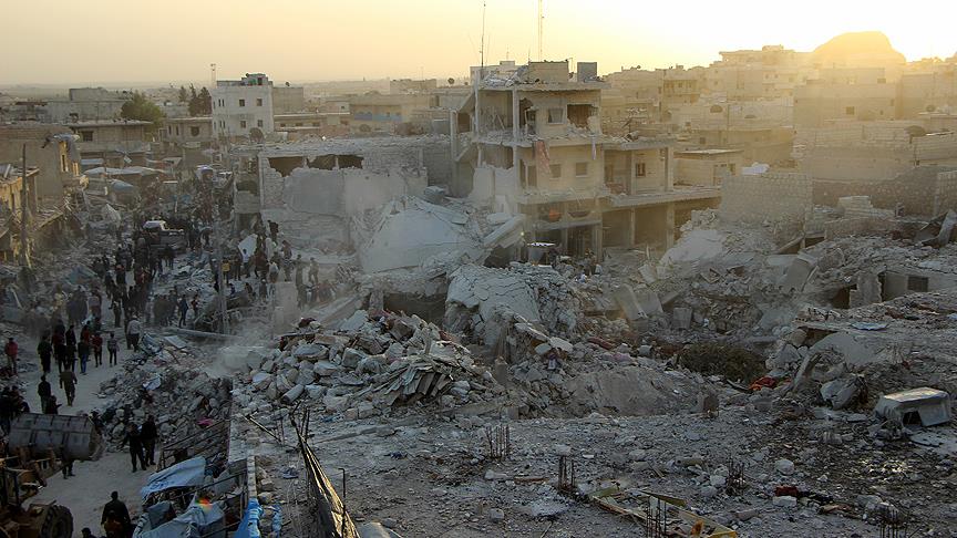 Suriye İnsan Hakları Ağı (SNHR), Halep ilinin batı kırsalında gerginliği azaltma bölgesi içerisindeki Etarib ilçesinde, geçen ay, pazar yerine düzenlenen hava saldırılarından Rusya'yı sorumlu tutarak saldırıda 8'i çocuk 79 sivilin öldüğünü bildirdi.