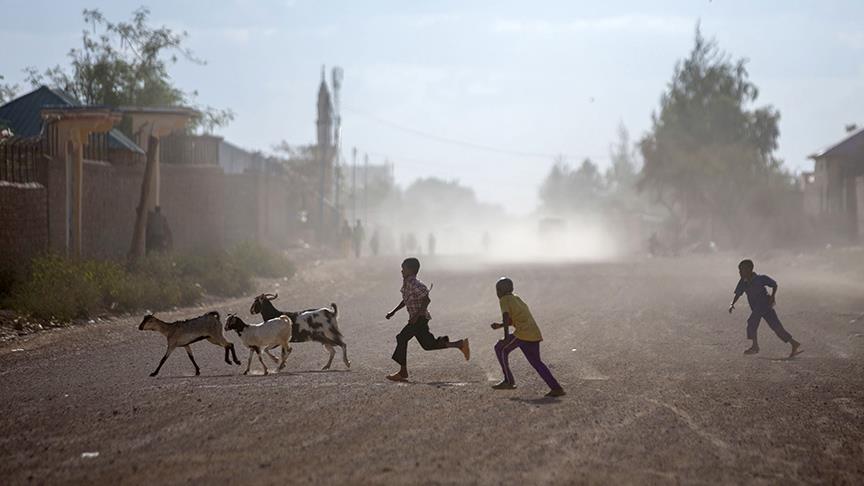 Somali'de kuraklığın şiddetli hissedildiği şehirlerden Baydova'ya çevre köylerden gelen çok sayıda çocuk, şehir merkezindeki su kuyularından aldıkları suları satarak hayatta kalıyor.