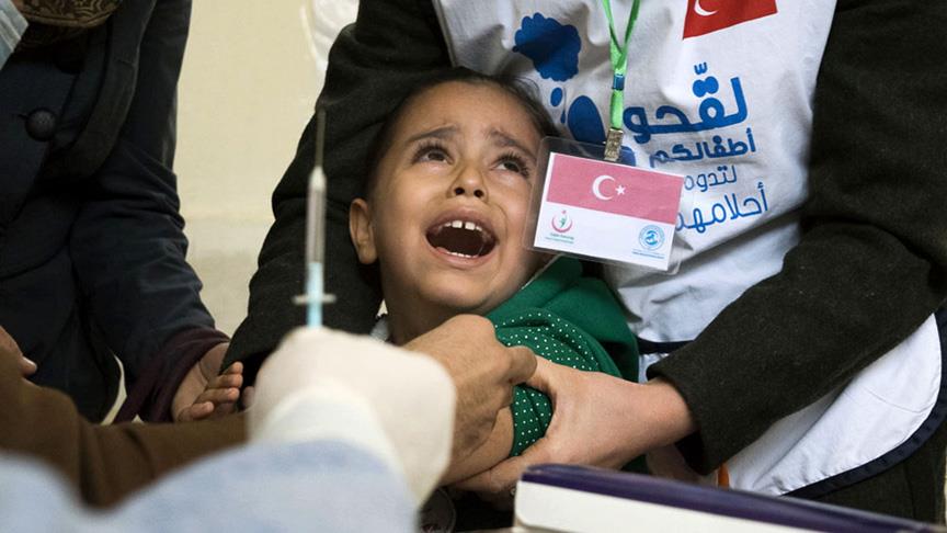 Suriye'nin İdlib, Halep, Hama illerinde ve terörden arındırılan Afrin'de yaklaşık bir milyon çocuk kızamığa karşı aşılanacak.
