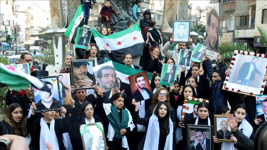Ellerinde sevdiklerinin fotoğraflarını taşıyan kalabalık, Sednaya'da ölen yakınları için gıyabi cenaze töreni düzenledi.