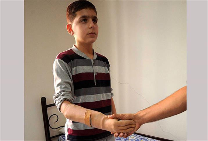 Esed güçlerinin Hama kentine düzenlediği hava saldırısında iki elini ve sol gözünü kaybeden 12 yaşındaki Suriyeli Ali Carcanazi, Türkiye'de hayata tutundu.