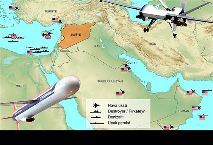 ABD, 6. filonun görev alanında yer alan Akdeniz'e şimdiden 4 savaş gemisi gönderdi. Bunlardan havada manevra yeteneğiyle donatılmış güdümlü Tomawahk füzeleri ve çeşitli uzun menzilli silahlarla dolu iki gemi Doğu Akdeniz'de yani Suriye sahiline yakın bölgede konuşlanmış durumda. Bunların dışında ABD'nin bölgede iki uçak gemisi ve nükleer güce sahip bir de denizaltısı bulunuyor.