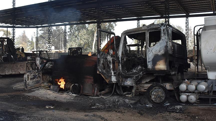 Teröristler kent merkezini terk ederken toplu taşıma, çöp toplama ve yol yapımında kullanılan araçları da yaktı. Çok sayıda aracın bir arada yakılarak tahrip edildiği park yerinde, mazot artıklarının yanmaya devam ettiği görüldü.