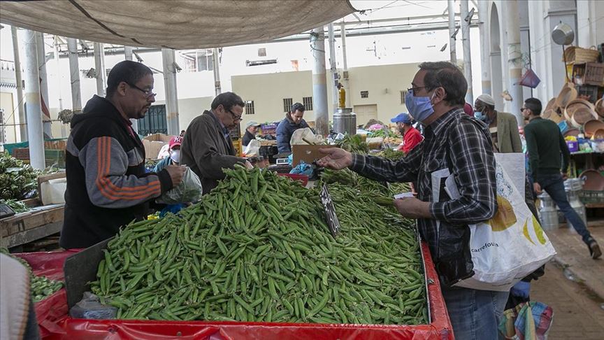 Sosyal mesafeye dikkat eden Tunuslular, meyveden sebzeye, balıktan tahıla birçok ürünün yer aldığı pazarda alışveriş yaparak ihtiyaçlarını karşılamaya çalıştı.