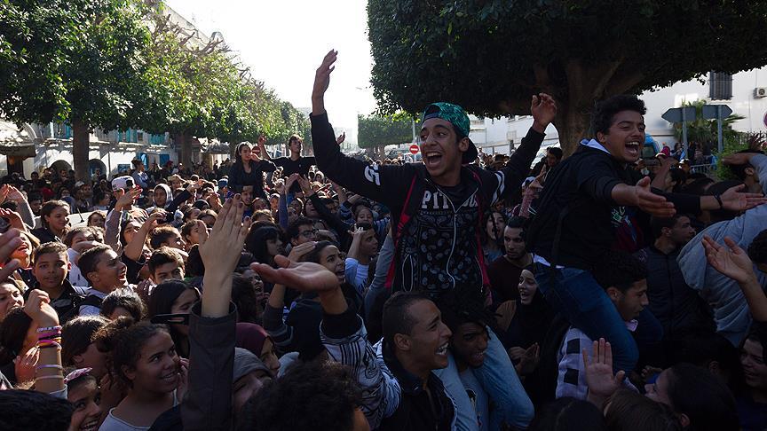 Başkent Tunus'un Habib Burgiba Caddesi'nde toplanan binlerce lise öğrencisi, yeni sınav sistemini protesto etti.