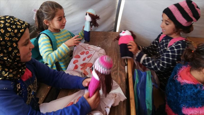 Korkmaz, "Erkeklere topaç, misket, hareketli renkli halkalardan oluşan oyuncaklar, kızlara kendi ördüğüm bebekler ve yine erkeklere de aile bireylerimin desteğiyle ördüğüm 150'ye yakın bere hediye ettik." ifadelerini kullandı.