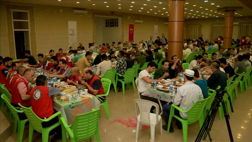 Musul’da Türkmenlerin yoğun olarak yaşadığı Reşidiye bölgesinde, Türk Kızılayı tarafından 600 kişilik iftar programı düzenlendi.