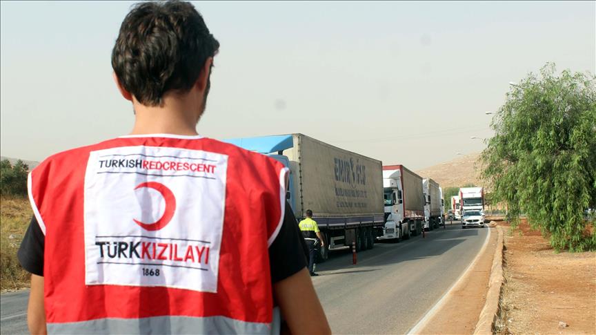 Türk Kızılayınca İdlib'deki ihtiyaç sahipleri için temin edilen yardımları taşıyan 10 tır, Cilvegözü Sınır Kapısı'ndan geçiş yaptı.