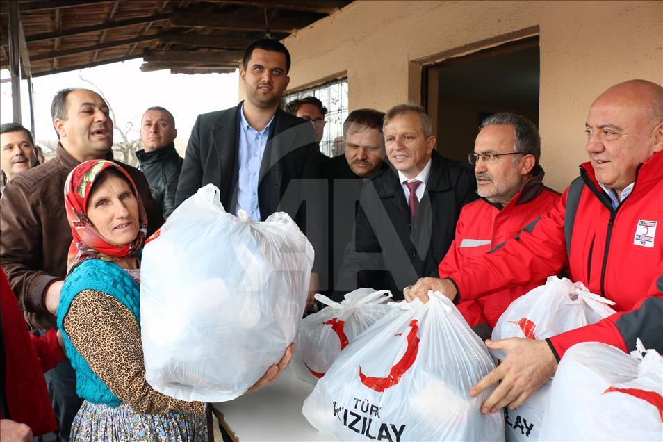 Turunç, AA muhabirine yaptığı açıklamada, Türk Kızılayı olarak dünyanın en uzak noktalarındaki ihtiyaç sahiplerine ulaştıklarını belirterek, "Bugün de Makedonya'nın Radoviş şehrinin Buçim köyüne geldik. Daha önce gönderdiğimiz bir tır, takribi 6 binden fazla giyim malzemeleri olan ayakkabı, tişört, pantolon, kazak, mont gibi, değişik yaş gruplarına hitap eden hazırlanmış paketlerimizi gönderdik." dedi.