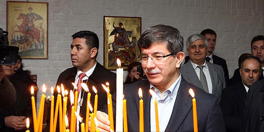 Bakan Davutoğlu kilisede mum yaktı ve Meryem Çiftçioğlu adlı yaşlı kadının elini öptü.