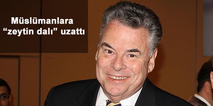ABD'de, ''ülkedeki Müslümanların Radikalleşmesi'' oturumuyla çok fazla tepki çeken ABD Temsilciler Meclisi İç Güvenlik Komitesi Başkanı Peter King, Müslümanlara ''zeytin dalı'' uzatarak, ''Amerikalı Müslümanların yüzde 99'unun olağanüstü insanlar'' olduğunu belirtti ve ''Zaman zaman yanlış anlaşıldığım oldu, ama ben Müslümanları temsil etmekten ve onların yanında yer almaktan gurur duyuyorum'' dedi.
