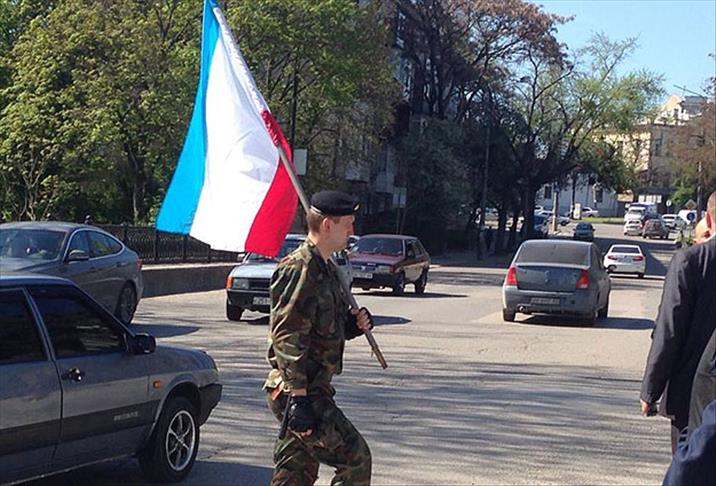 Ukrayna'dan tek taraflı bağımsızlığını ilan eden Kırım'da askeri üniformalı kişiler, Kırım Tatar Milli Meclisi binasındaki Ukrayna bayrağını indirerek yerine Kırım bayrağı astı.