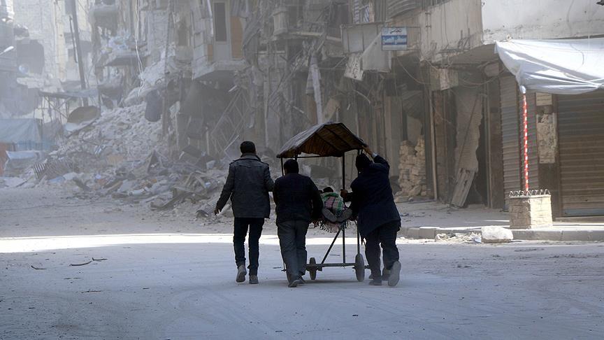 Halep’te sivillere yönelik saldırıların durması çağrısında bulunan protestocular, elçilik önüne Suriye’deki çocuk ölümlerini temsilen kırmızı boyalı bir bez serdi ve üzerine oyuncak bebekler ve “Putin, bebekleri bombalamayı durdur” yazılı pankart bıraktı.
