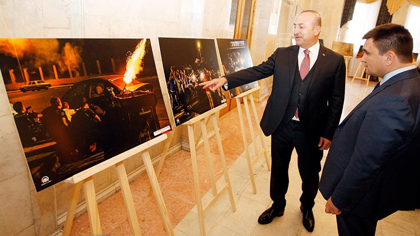 Dışişleri Bakanı Mevlüt Çavuşoğlu ve Ukrayna Dışişleri Bakanı Pavlo Klimkin, Fetullahçı Terör Örgütü’nün (FETÖ) darbe girişimi sırasında Anadolu Ajansı (AA) muhabirlerinin çektiği fotoğraflardan oluşan “15 Temmuz’da Türkiye’de Ne Oldu” sergisini açtı.