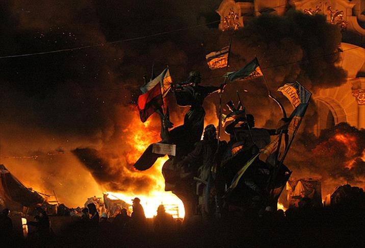 Yönetim karşıtı gösterilerin devam ettiği Ukrayna'nın başkenti Kiev'de dün gece boyunca devam eden ve 25 kişinin yaşamını yitirmesine neden olan çatışmaların ardından Bağımsızlık Meydanı harabeye döndü.