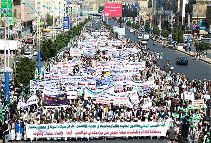 Yemen'in başkenti Sana'da Cumhurbaşkanı Abdurabbu Mansur Hadi'nin evinin önünde toplanan göstericiler, Husilerin, tank ve roket gibi ağır silahlar kullanarak aralarında kadın ve çocukların olduğu yüzlerce kişiyi "katlettiğini" dile getirerek, hükümeti önlem almaya çağırdı.