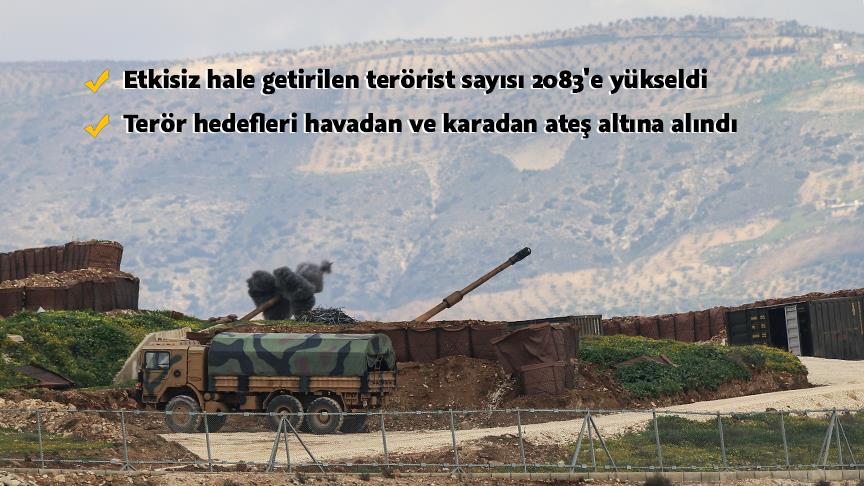 Harekatın başlangıcından bu yana etkisiz hale getirilen terörist sayısı 2083 oldu.
