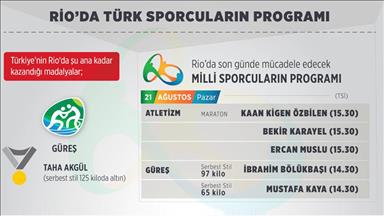 Milli güreşçilerden Taha Akgül, Türkiye'ye oyunlardaki ilk altın madalyasını kazandırırken, Selim Yaşar ise gümüş madalya elde etti. Bu sonuçların ardından 8 madalyaya ulaşan Türkiye, sıralamada 60'ıncılıktan 41'inciliğe yükseldi.