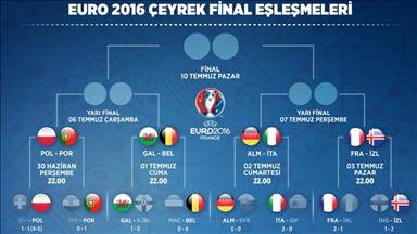 İzlanda, çeyrek finalde Fransa ile 3 Temmuz Pazar TSİ 22.00'de Saint-Denis kentinde karşı karşıya gelecek.