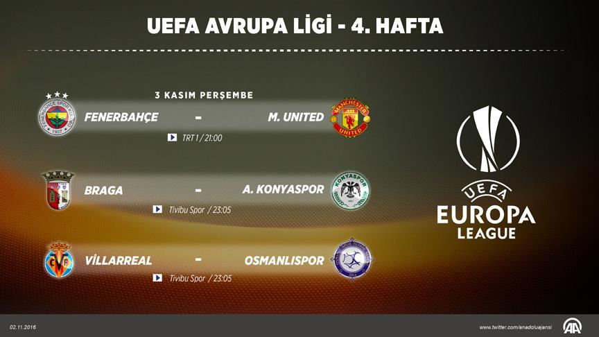 Avrupa Ligi'nde dördüncü haftanın maç programı (TSİ) şöyle: