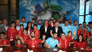 Açıklamada, büyük ödülü kazanan Xavi'nin temsili çeki banka yetkililerinden teslim aldığı sırada çekilen fotoğrafına yer verildi.