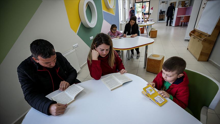 Özellikle öğle saatlerindeki ders aralarında öğrencilerin adeta akın ettiği kütüphanede, çocuklarını bekleyen veliler de kitap okuma alışkanlığı kazanıyor.