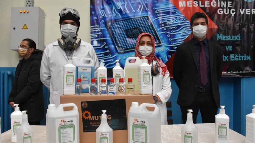 Okul Müdürü Hamit İzdaş ise bugüne kadar 70 bin litre dezenfektan üretimi yaptıklarını bildirdi.