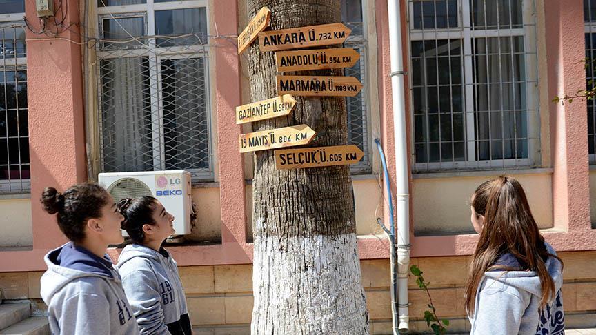 Okulda farklı illerdeki 50 üniversitenin tabelasının bulunduğunu anlatan Kalli, "Tabelayla üniversite kazanılamayacağını biliyoruz. Ama bu uygulamayla öğrencilere hedeflerini hatırlatıp daha fazla hedefe odaklanmalarını sağlıyoruz." diye konuştu.