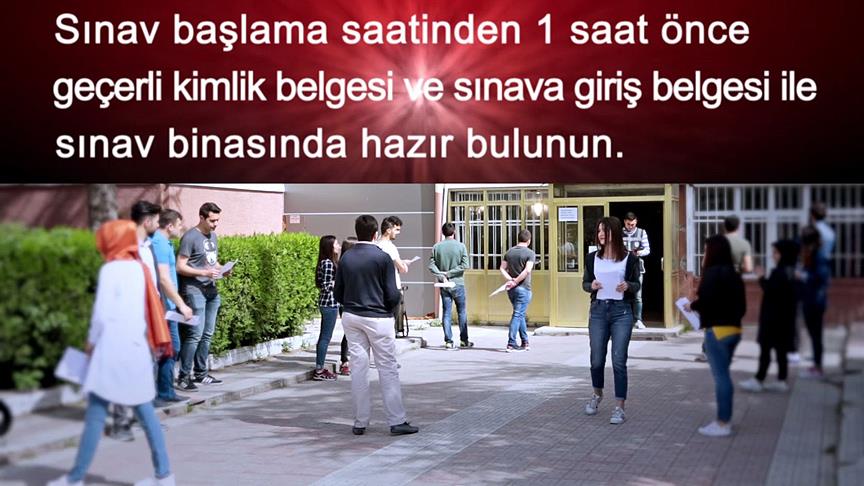 Adaylara sınavın başlamasına 15 dakika kala bina girişlerinin kapatılacağı ve bu saatten sonra içeriye hiçbir adayın alınmayacağı hatırlatıldı.