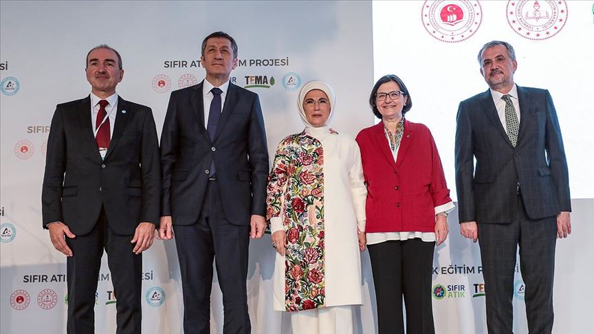 "Çevre ve iklim değişiklikleri konusunda dünya liderlerinin bile kafasını kuma gömdüğü bir dönemde Hanımefendi'nin göstermiş olduğu cesaretin anlamı Türkiye için değil dünya için çok büyüktür. Bu cesaretle, yeni nesillerimizde çevre ve tabiat farkındalığının kazandırılması noktasında pek çok imkanı sunan Sıfır Atık Projesinin yaygınlaştırılması Milli Eğitim Bakanlığı açısından kritik öneme sahiptir. Milli Eğitim Bakanlığımız, Çevre ve Şehircilik Bakanlığı ile TEMA Vakfı arasında 25 Aralık 2018 tarihinde imzalanan "Sıfır Atık Eğitim Projesi İşbirliği Protokolü" kapsamında, Sıfır Atık Eğitim Programı oluşturuldu. Sıfır Atık Eğitim Projesi kapsamında 2018-2019 eğitim öğretim döneminde projenin Ankara'daki pilot uygulamasında, 88 okulda, 74 bin öğrenci, 425 öğretmeni hedefleyen planlama yapıldı. 2019 yılı Nisan-Mayıs döneminde 20 ilde daha eğitim programı yaygınlaştırılarak 106 okulda, 201 sınıfta, 5 bin 707 öğrenciye Sıfır Atık Eğitim Programı uygulandı."
