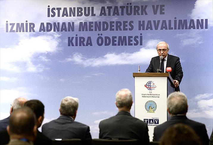 Ulaştırma, Denizcilik ve Haberleşme Bakanı Lütfi Elvan, TAV Havalimanlarının, Devlet Hava Meydanları İşletmesi'ne (DHMİ) dün gerçekleştirdiği kira ödemesinin temsili çek teslim törenine katıldı.