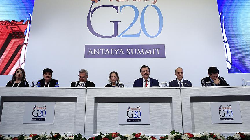 Anadolu Ajansı'nın (AA) ev sahibi fotoğraf sağlayıcısı olduğu G20 Liderler Zirvesi öncesinde, basın merkezinde düzenlenen toplantıda G20 açılım grupları, mülteci krizi hakkında grup bildirisini açıkladı.
