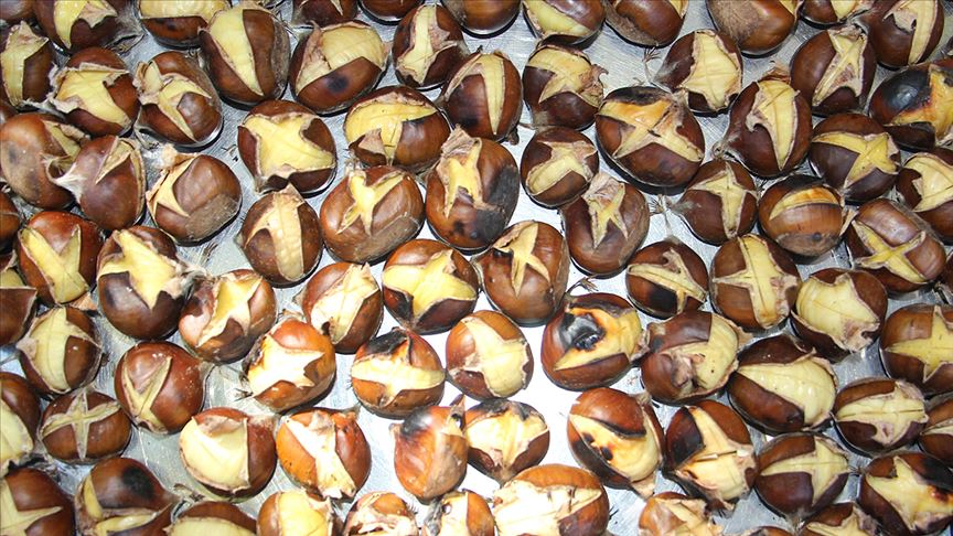 Sinop'un Erfelek ilçesinde üretilen ve kabuğundan çabuk ayrılması, farklı lezzeti ve parlak rengi nedeniyle bölgede "kuzu kestanesi" olarak adlandırılan Erfelek kestanesi, seyyar tezgahlarda yerini aldı.