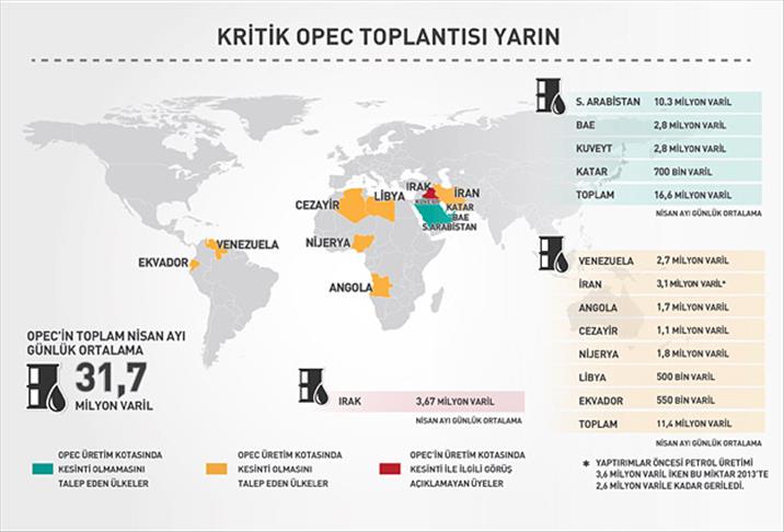 Gelirleri büyük ölçüde petrol ihracatına bağlı olan ve nisan ayında günlük ortalama 2,7 milyon varil ham petrol üreten Venezuela, örgütün petrol üretiminde kesintiye gitmesini talep ediyor. İran, Venezuela'ya destek olurken, ayrıca OPEC'ten kota artırımı istiyor.
