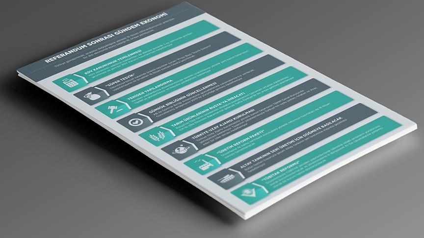 AA muhabirinin yaptığı derlemeye göre, 16 Nisan referandumunun ardından belirsizliğin ortadan kalkmasıyla ağırlıklı gündem maddesi ekonomi olacak. 17 Nisan'dan itibaren ekonominin iki temel ayağında reformlar ve ekonomik canlanmayı daha da güçlendirecek yeni destek ve teşviklerin geliştirilmesi yer alacak. Devam eden destek ve teşviklerin sonuçlarına ilişkin de olumlu sonuçlar halk oylaması sonrası net şekilde görülebilecek.