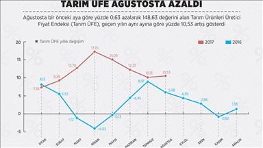 En fazla aylık azalış, tek yıllık bitkisel ürünler ana grubunda görüldü. Bir önceki aya göre, tek yıllık bitkisel ürünlerde yüzde 2,92 azalış, çok yıllık bitkisel ürünlerde yüzde 11,80 ve canlı hayvanlar ve hayvansal ürünler ana grubunda yüzde 0,97 artış görüldü.