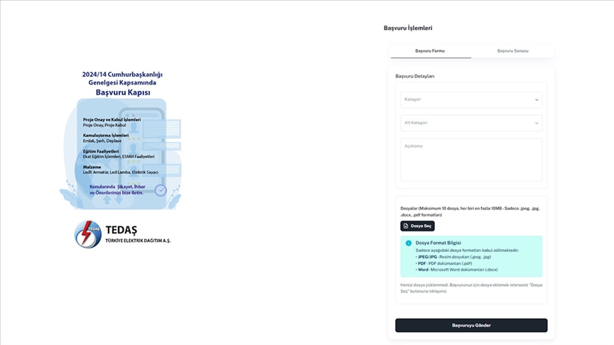 AA Canlı Rehberlik, Teftiş ve Denetim Faaliyetlerinin Düzenli ve Etkin Bir Şekilde Yerine Getirilmesine İlişkin Cumhurbaşkanlığı Genelgesi kapsamında geliştirilen TEDAŞ Başvuru Kapısı, kurumsal şeffaflığı ve hesap verebilirliği güçlendirirken, vatandaş ile kurum arasında güvenilir bir iletişim köprüsü kuruyor.