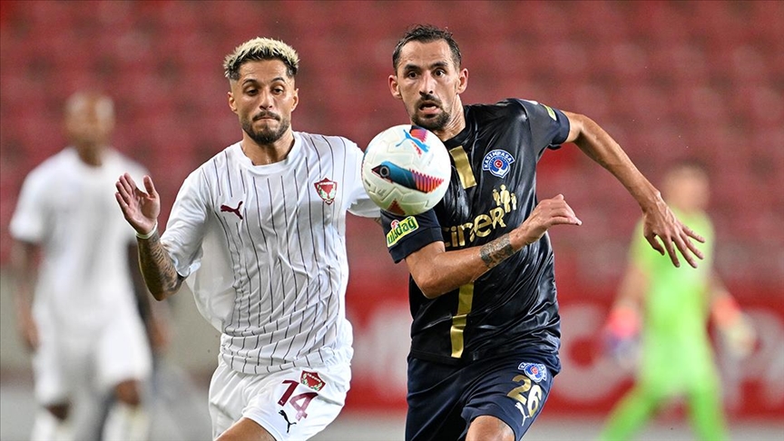 21. dakikada Hatayspor öne geçti. Bamgboye'nin pasıyla ceza sahasının sağında topla buluşan Kamil Ahmet Çörekçi, meşin yuvarlağı penaltı noktasına çıkardı. Savunmaya çarpan topu önünde bulan Fernandes, düzgün bir vuruşla meşin yuvarlağı ağlara gönderdi: 1-0.