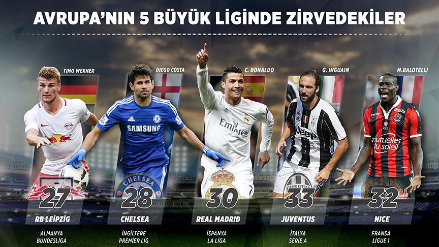 İngiltere'de Chelsea, İspanya'da Real Madrid, Almanya'da Leipzig, İtalya'da Juventus, Fransa'da ise Nice haftayı lider kapadı.