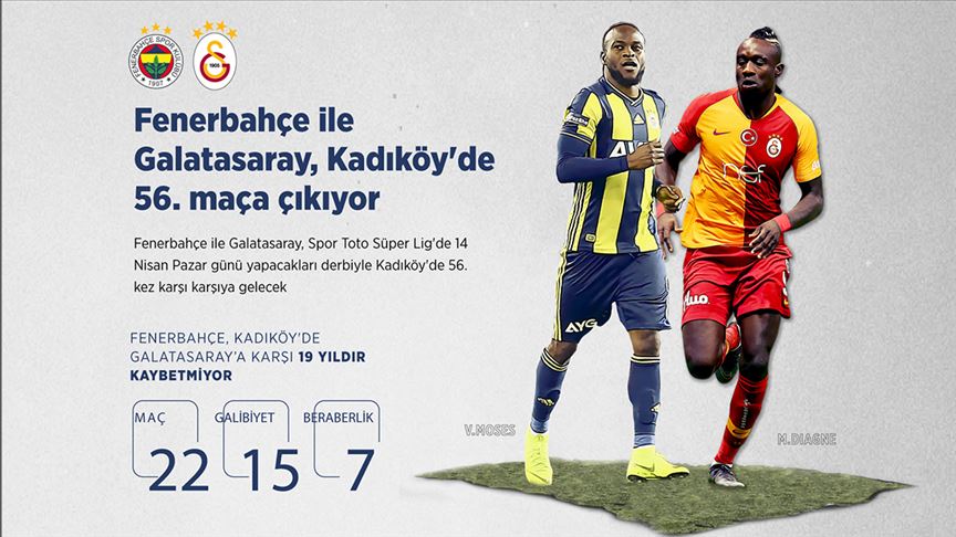Fenerbahçe ile Galatasaray, Spor Toto Süper Lig'de 14 Nisan Pazar günü yapacakları derbiyle Kadıköy'de 56. kez karşı karşıya gelecek.
