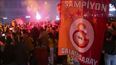 Galatasaray'ın Nef Stadı'nda ezeli rakibi Fenerbahçe'yi 3-0 yendiği maçın ardından düzenlenen etkinlikte taraftarlar elde edilen başarıyı kutlarken, sarı-kırmızılı takım da şampiyonluk kupasına kavuştu.