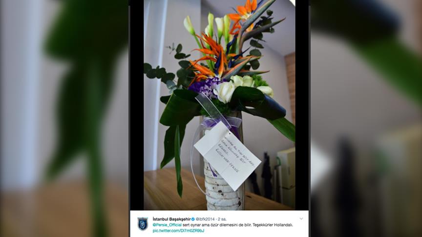 Fenerbahçe'nin Hollandalı golcüsü Robin van Persie, maç içinde çarpışması sonrasında burnu kırılan Medipol Başakşehirli futbolcu Mahmur Tekdemir'e "özür çiçeği" gönderdi.