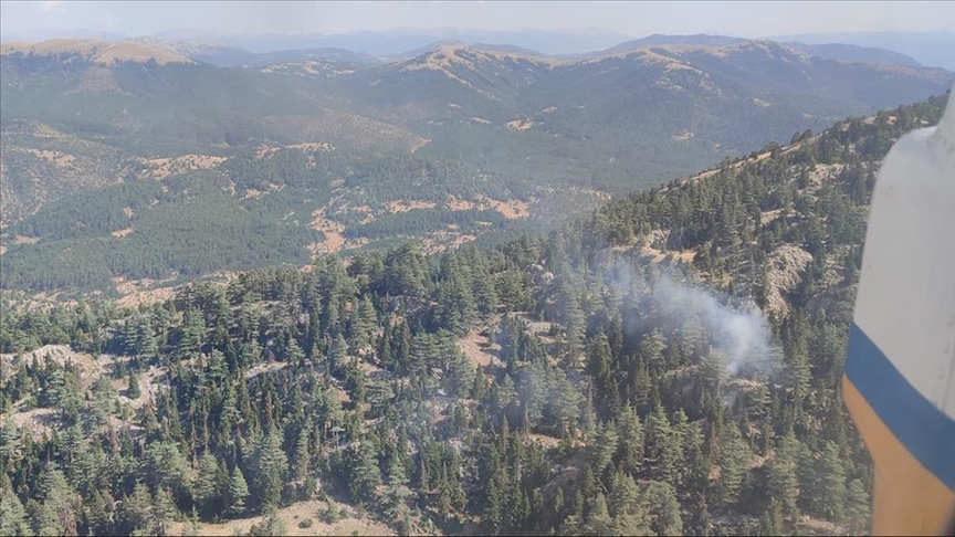 İhbar üzerine bölgeye, Orman Bölge Müdürlüğü ekipleri ile helikopter, yangın söndürme uçağı ve arazözler yönlendirildi.