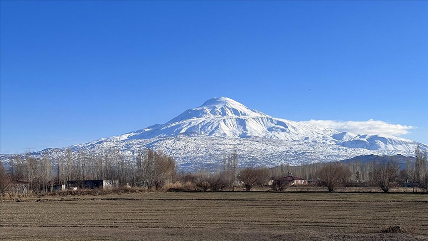 Yağış 5 bin 137 metre rakımlı Ağrı Dağı'nı ve eteklerini beyaza bürüdü.