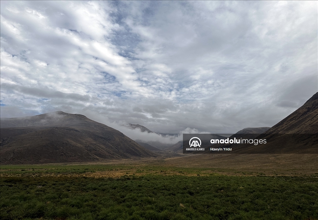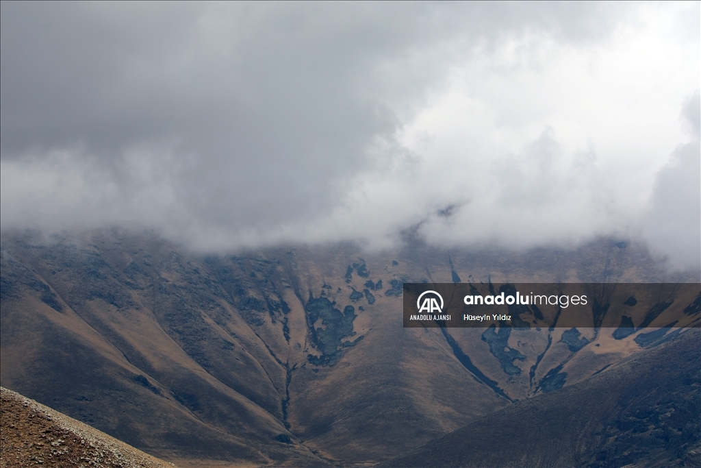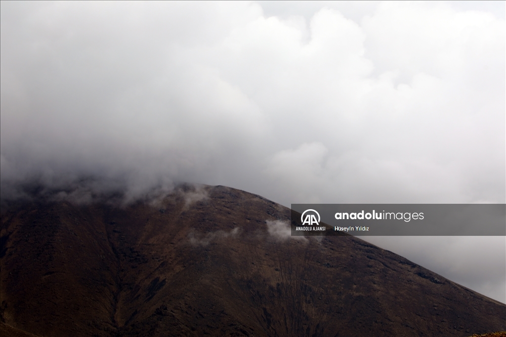 Sonbaharın gelmesiyle birlikte hava sıcaklığının düştüğü Doğu Anadolu Bölgesi'ndeki bazı yüksek kesimli noktalar, sis altında kaldı.
