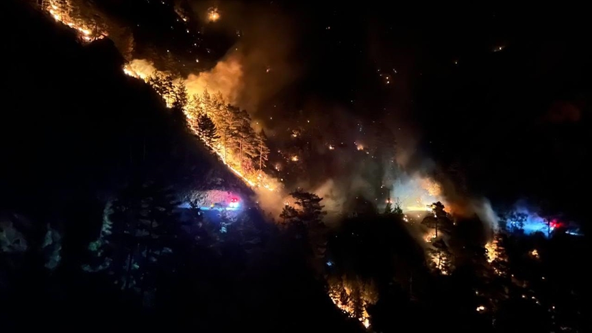 Yangına çok sayıda orman ve itfaiye ekibiyle karadan müdahale ediliyor.