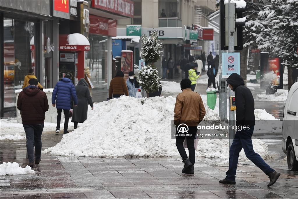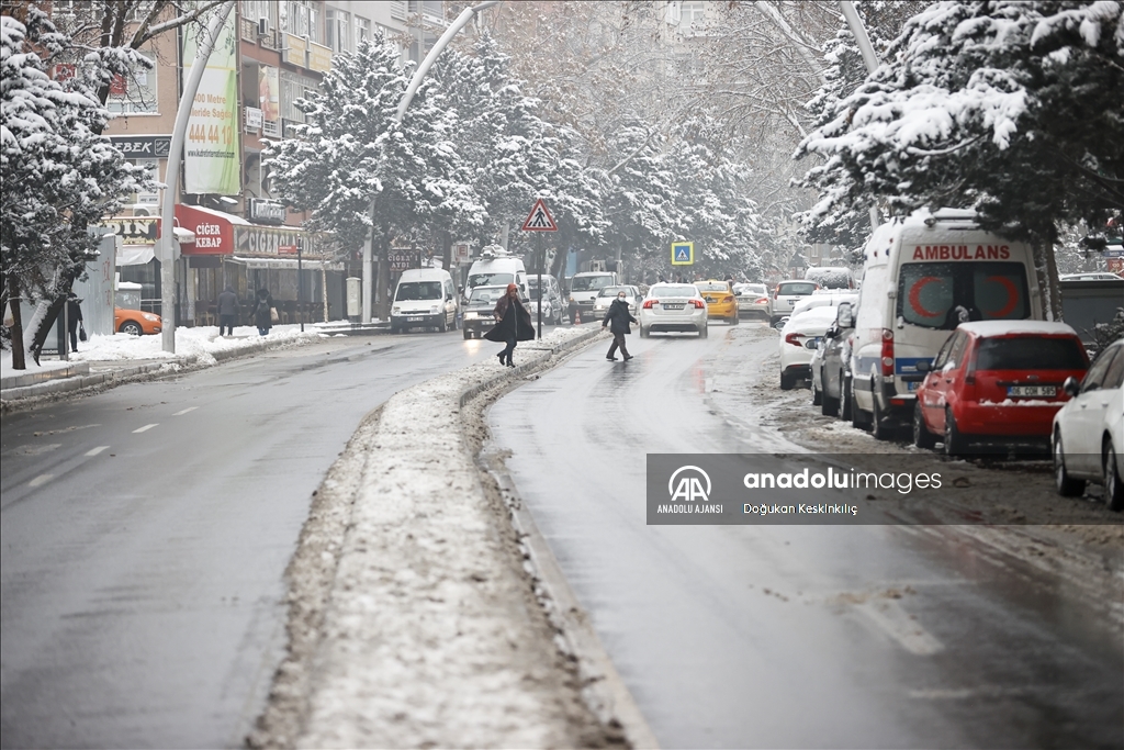 Çankaya'da karla kaplanan Cinnah Caddesi'nde araçların kaydığı ve güçlükle ilerlediği görüldü. Yolda kalan kimi araç sürücüleri de kar küreme ve tuzlama araçlarıyla caddedeki karın temizlenmesini bekledi.