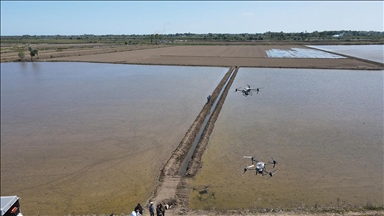 Sisli havada Eymir Gölü'nde sabah yürüyüşü ve kano yapanlar da dronla görüntülendi.