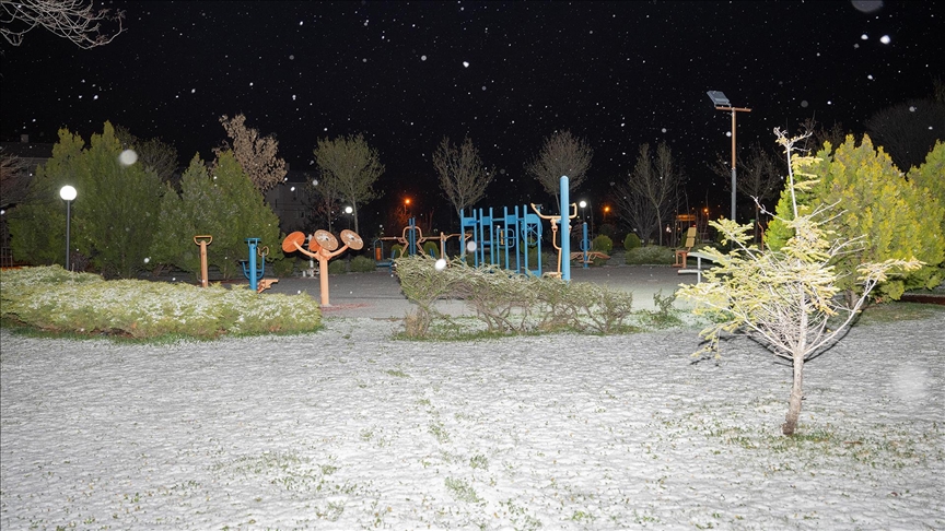 Yağış nedeniyle bazı park ve sokaklar beyaz örtüyle kaplandı.