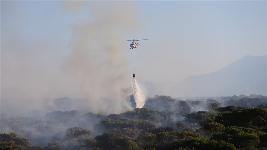 Yangına 2 helikopter, çok sayıda arazöz, su ikmal aracı, dozer, itfaiye ve orman ekipleriyle müdahalede bulunuldu.